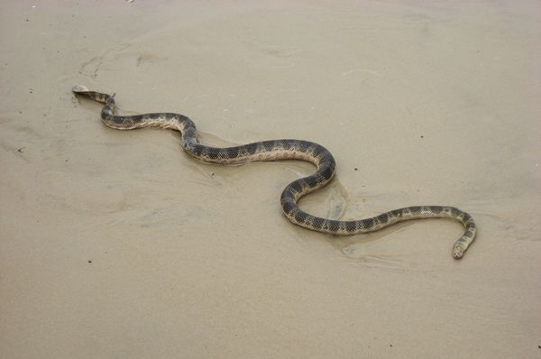 6. งูทะเล (sea snake/Hydropheinae เเละ Laticaudinae) ที่มีพิษ เช่น งูคออ่อน งูชายธง งูผ้าขี้ริ้ว งูฝักมะรุม มีอยู่ในอ่าวไทยทั่ว ๆ ไป พบได้ตามจังหวัดชายฝั่งทะเลทุกภาค มีลักษณะหัวและคอเล็กกว่าลำตัวมาก มีหางแบนสำหรับว่ายน้ำ มีท้องสีขาว และหลังเป็นลายดำ ๆ ส่วนมากไม่ดุ อ่อนเปลี้ยเมื่อขึ้นพ้นน้ำ แต่ว่องไวเมื่ออยู่ในทะเล ชอบอาศัยตามทะเลโคลนมากกว่าทะเลทรายน้ำใส มีพิษต่อกล้ามเนื้อ